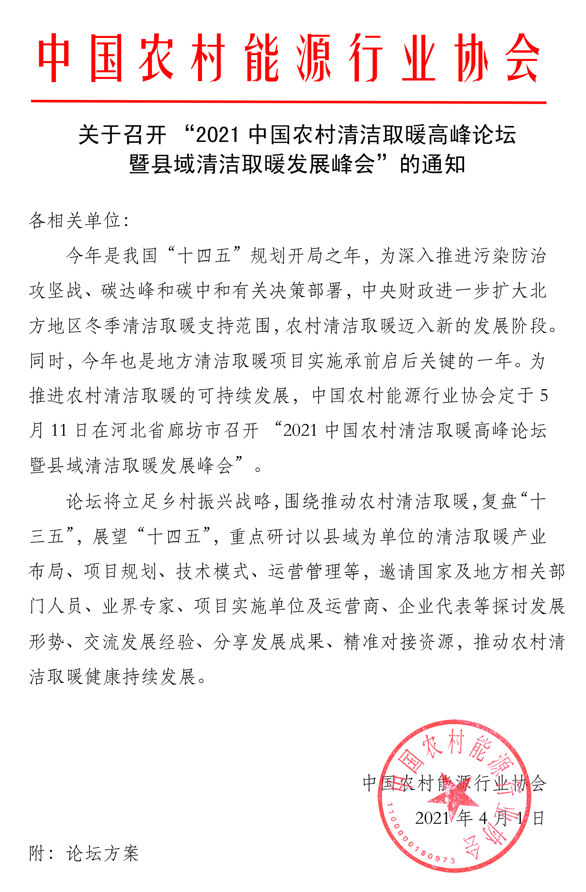 2021中国农村清洁取暖高峰论坛暨县域清洁取暖发展峰会