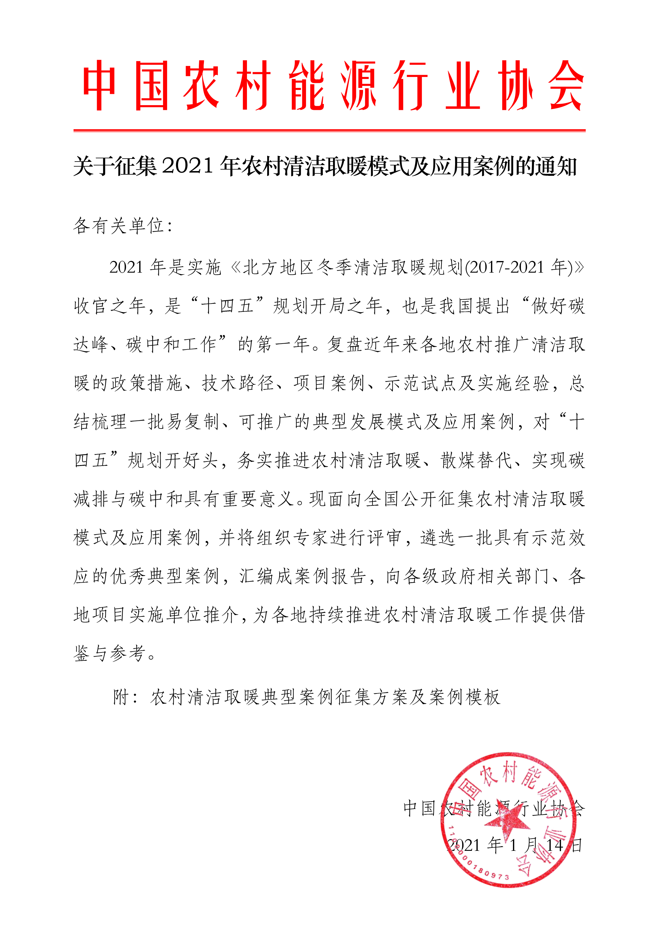 农村清洁取暖模式及应用案例征集方案