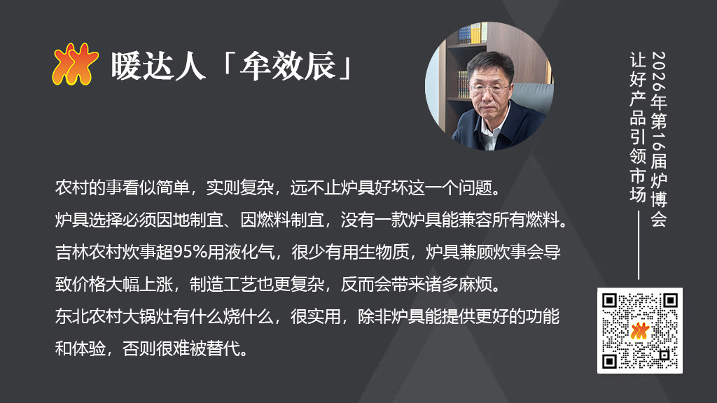 东北农村整体消费能力相对较低,很多地方烧煤农户都不到2%,大部分还是沿用传统大锅灶烧柴等方式。对于炉具行业来说,把目标客户定在商用领域会更合适,农村家用炉具推广难度较大,农民更倾向于“愿意用啥用啥”维持现状。